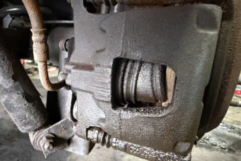 点検したところ、原因はブレーキキャリパー内部の「ピストン」にありました。長年の使用でピストンに錆や傷が発生し、そこからブレーキオイルがじわじわと漏れ出していたんです。オイルが漏れると油圧が正しく伝わらなくなり、最悪の場合はブレーキが効かなくなります。チェックランプは、車が発してくれた「最後のSOS」でした。