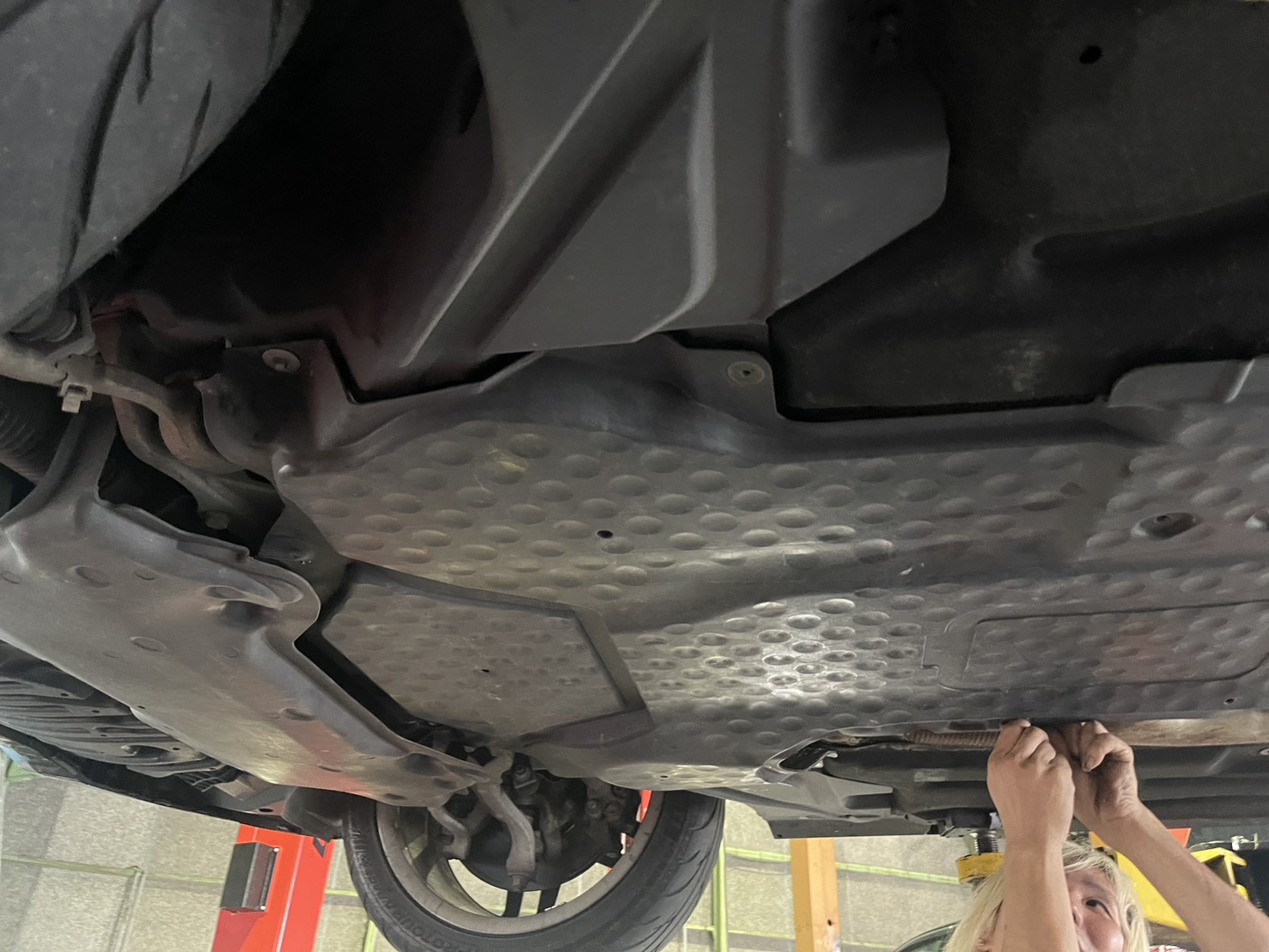 オーナー様からは、「段差を乗り越える時や、少し荒れた路面を走行すると、運転席の下あたりから『カタカタ』という音がする」とのお話を伺いました。まずは試運転を行い、実際に異音の発生状況や音の種類、発生タイミングを慎重に確認。