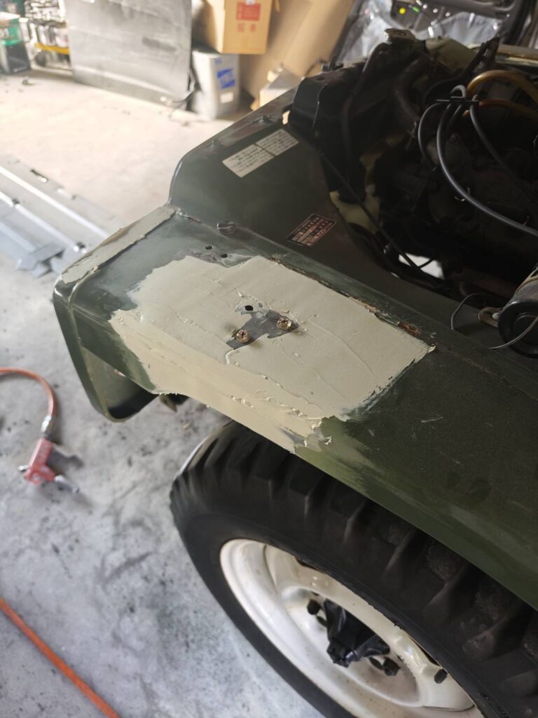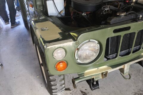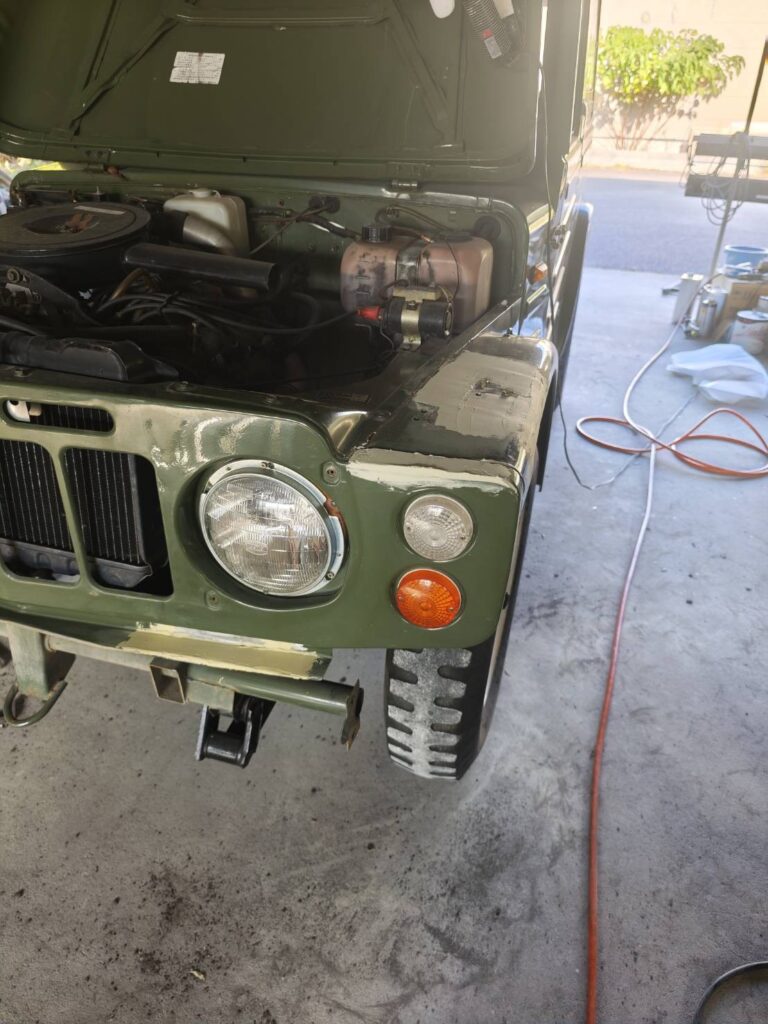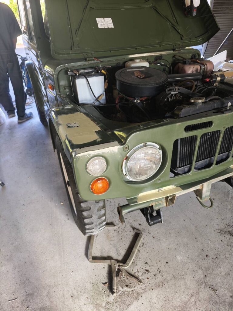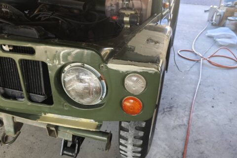 まずは、ジムニーを細部まで分解し、ボディやフレームの状態を詳しくチェックしました。特に旧車は錆びや腐食が進行していることが多いため、それらを徹底的に削り落とし、溶接・パテ処理で耐久性を確保する板金作業に最も時間をかけました。この土台づくりが、仕上がりの美しさを左右します。